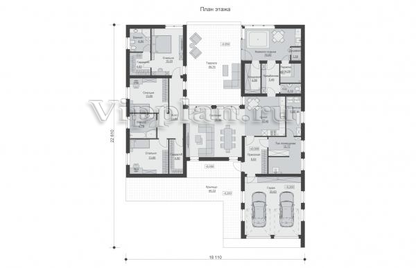 | Размеры дома: | 22.61м×18.11м |